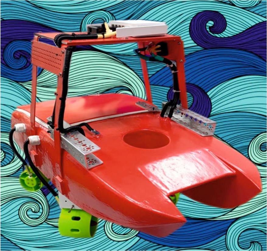 Первые чертежи предполагали простую лодку с датчиками, но быстро стало ясно: для работы в зарослях и узких зонах нужна высокая манёвренность. Тогда был применён нестандартный подход — четыре погружных двигателя разместили в форме «X» под углом 45°. Такая конфигурация позволила аппарату двигаться в любом направлении, поворачиваться на месте и точно наводиться на точки замера.