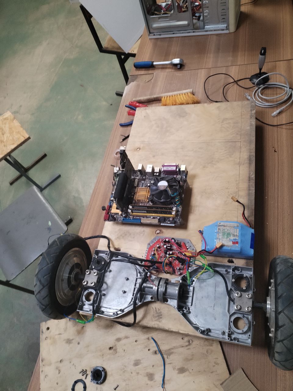 1. Создан функциональный прототип робота-помощника. Устойчивая двухколесная платформа с мощными двигателями постоянного тока. Грузоподъемность: до 150 кг. Автономная работа до 6 часов.