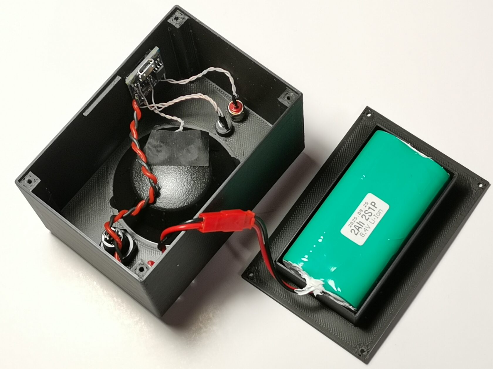 Собрана и протестирована автономная система питания. В программе Tinkercad спроектирован базовый корпус с отсеками для всех компонентов и отверстием для излучателя.